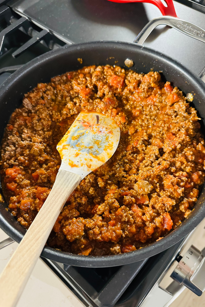 - Once sautéed, add in italian sausage + brown